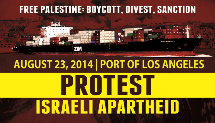 The ship was scheduled to be unloaded today at Pier A of the Port of Long Beach.Over 250 people from throughout Southern California took part in the Community Picket at the entrance to the Pier called by the Block The Boat - LA Coalition. We were there to show strong community support for the recent call by the Palestinian General Federation of Trade Unions (PGFTU) and the Congress of South African Trade Unions (COSATU) asking workers around the world to stand in solidarity with Palestinian workers, particularly those in Gaza who have been targeted so brutally by Israel over the last month, by refusing to handle Israeli goods. We were asking Dock Workers from the International Longshoremen and Warehouse Union (ILWU) to stand in solidarity with their Palestinian sisters and brothers and refuse to unload the Zim Haifa.